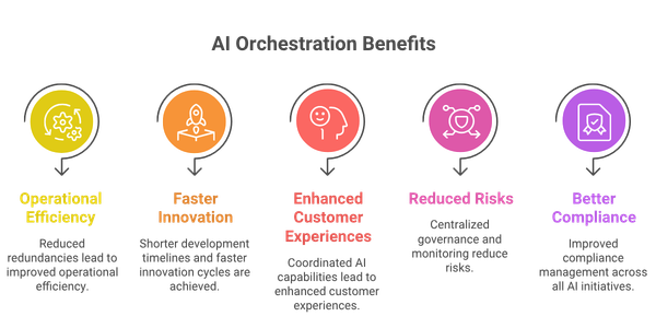 Operational Efficiency Gains: Companies report significant improvements through elimination of silos, reduction of redundancies, and streamlined workflows. AI orchestration automates repetitive tasks and maximizes resource utilization, leading to substantial cost savings.