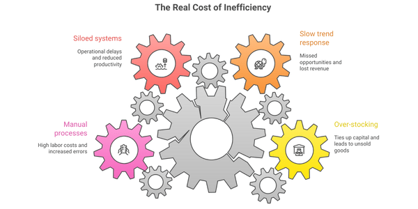 Disconnected systems cost retailers and brands billions in lost opportunities annually. Fashion companies operate with fragmented systems across creation, manufacturing, and marketing. Teams struggle to align on priorities or respond quickly to market changes. Brands operate without strategic insight into inventory levels, order statuses, and demand trends.